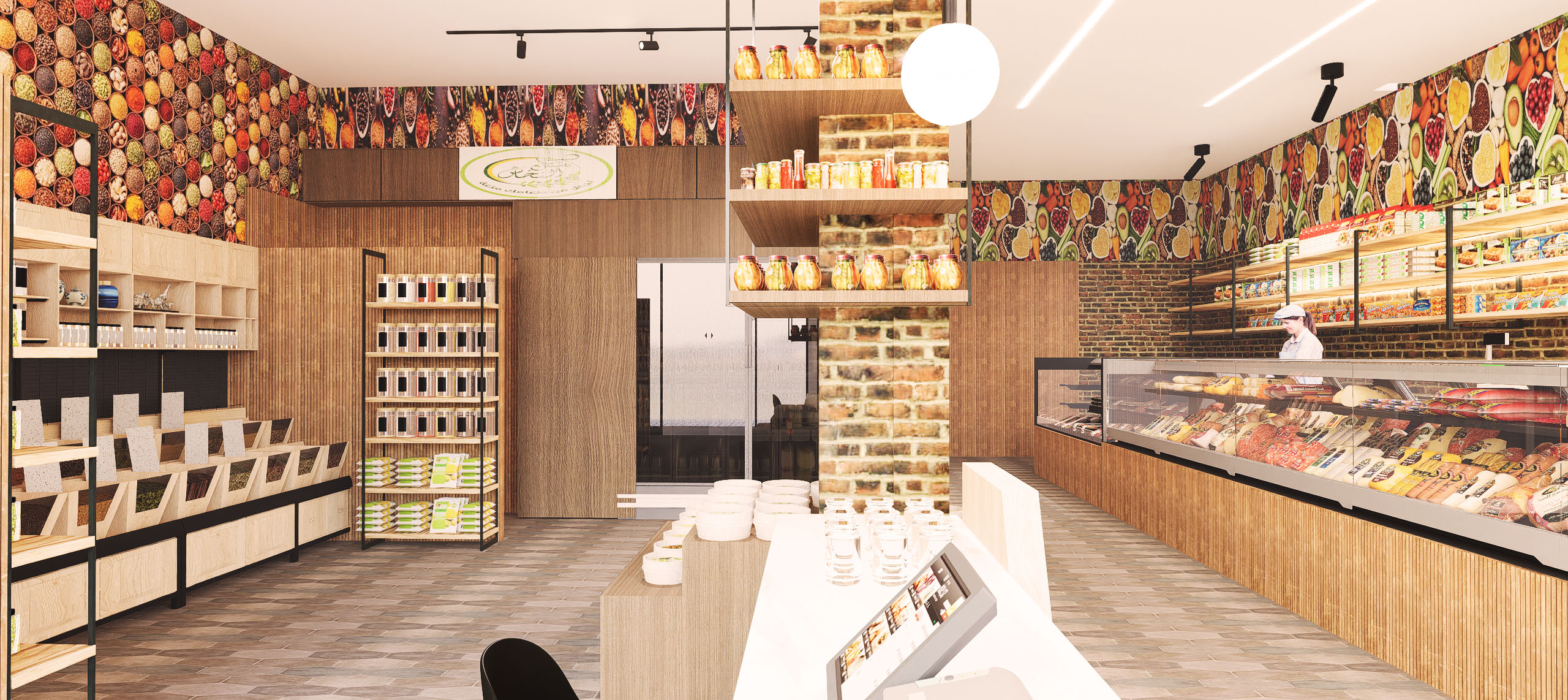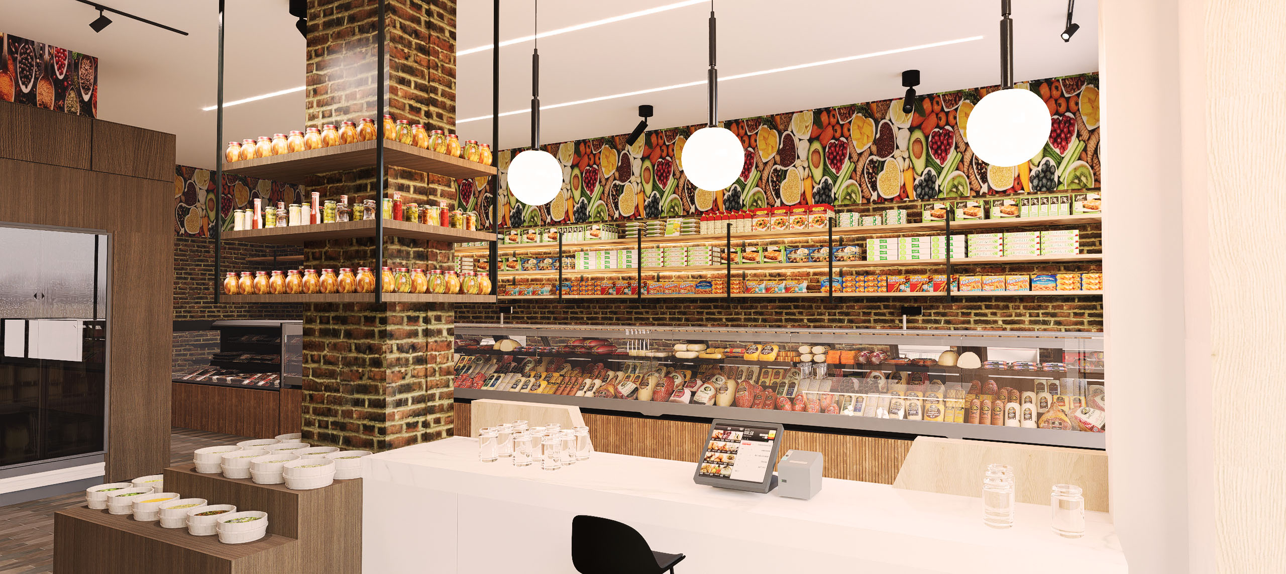 חנויות מזון דורשות תכנון מותאם לזרימת לקוחות, נגישות למדפים ולמקררים ושילוב זהות מותג ברורה.